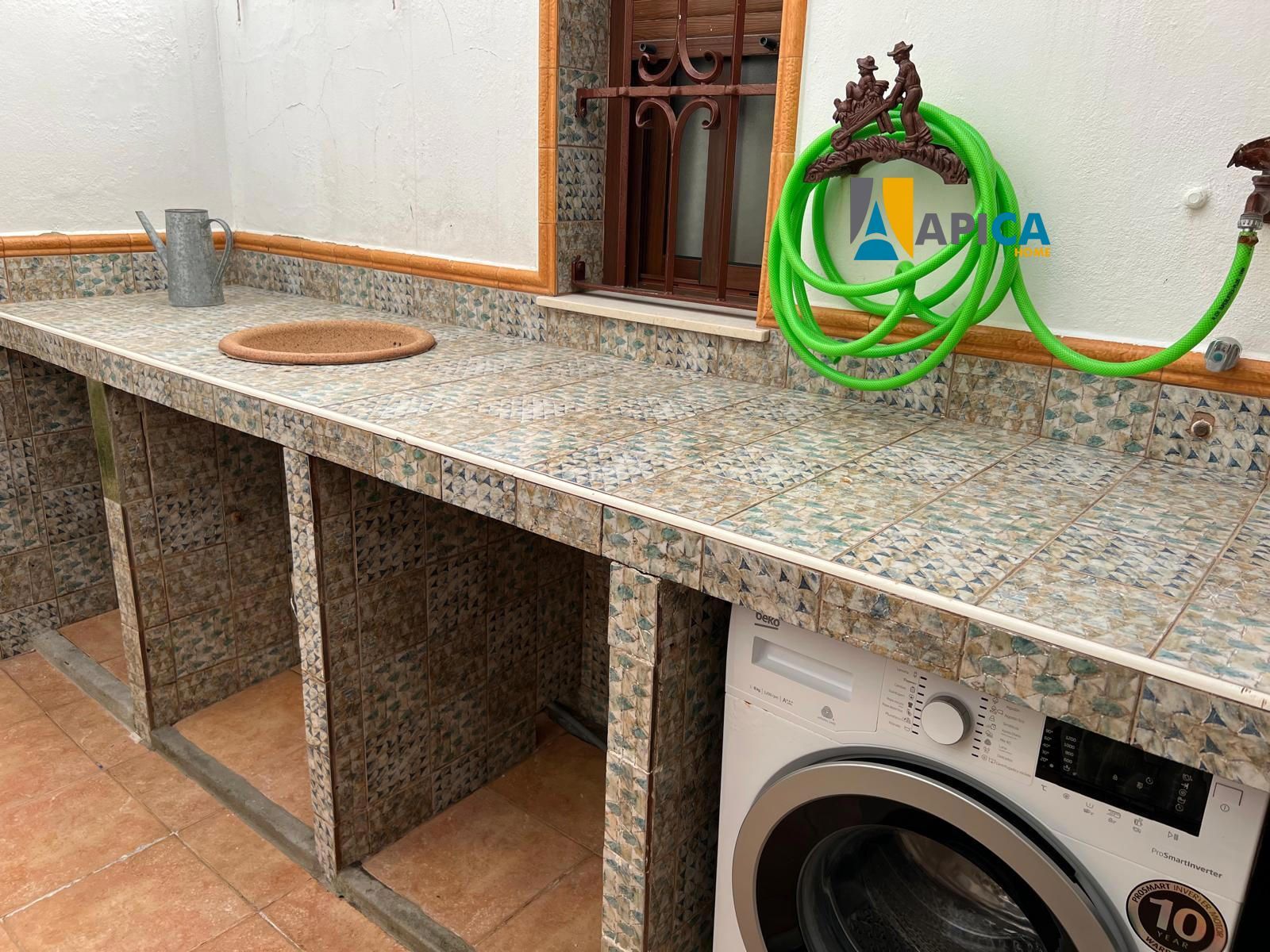 En la primera planta, salón con chimenea, aseo y amplia cocina equipada, patio con tren de lavado.