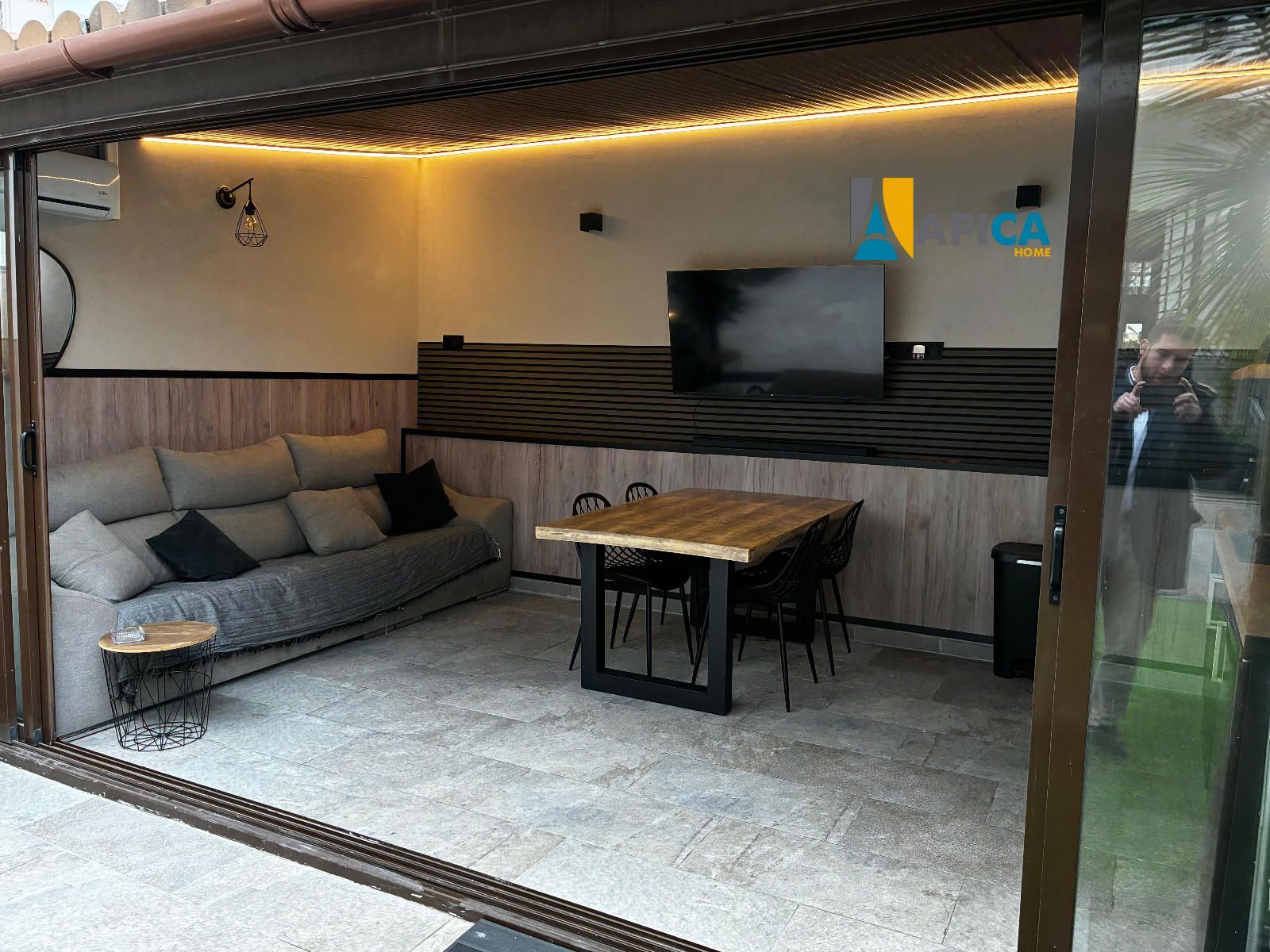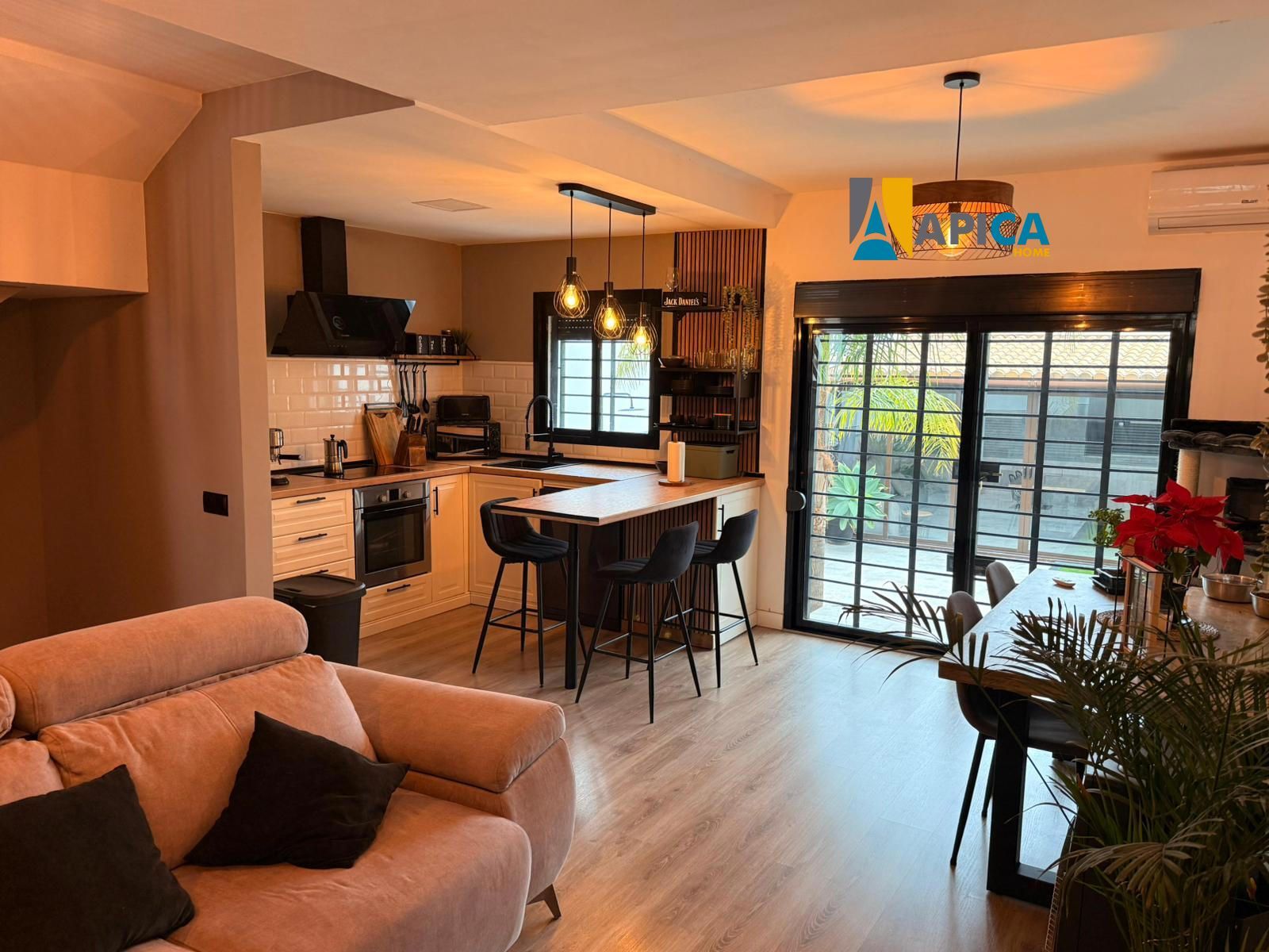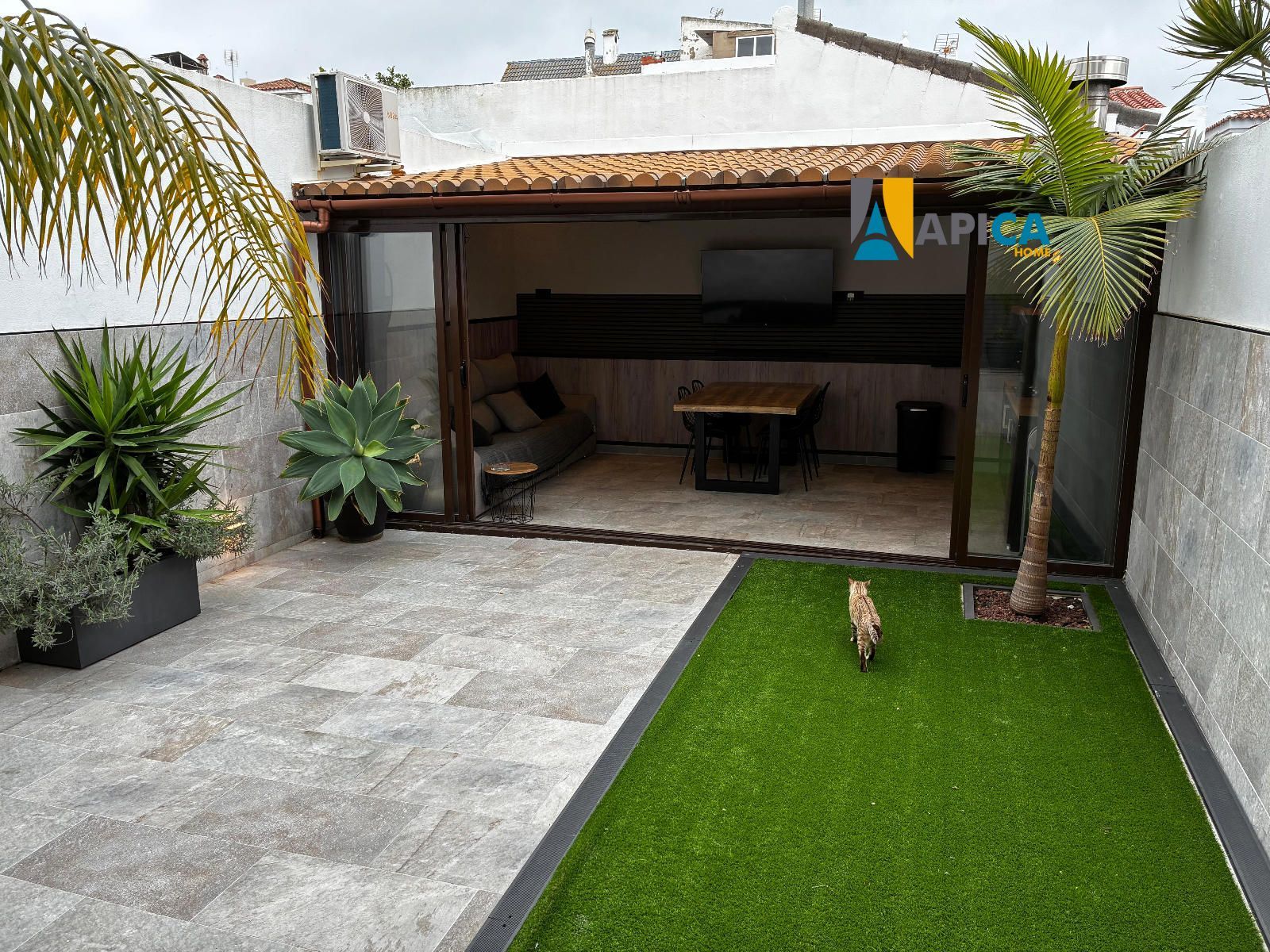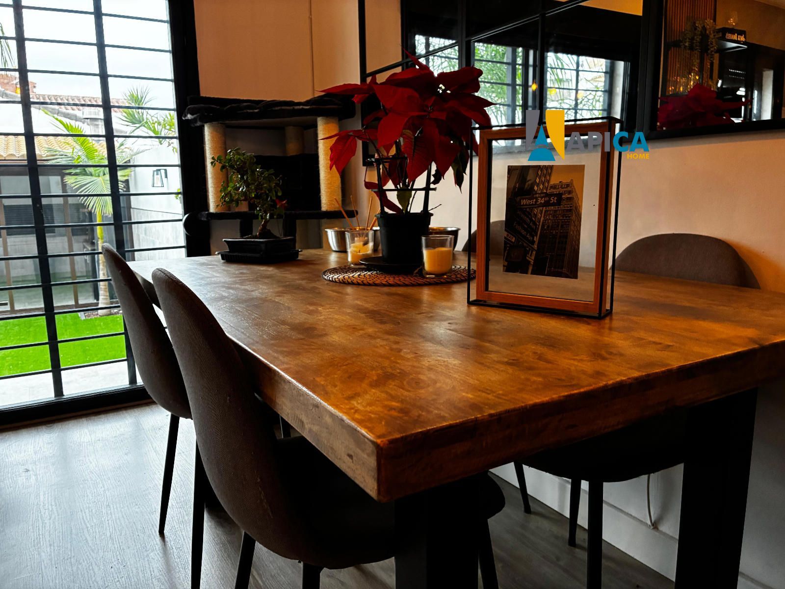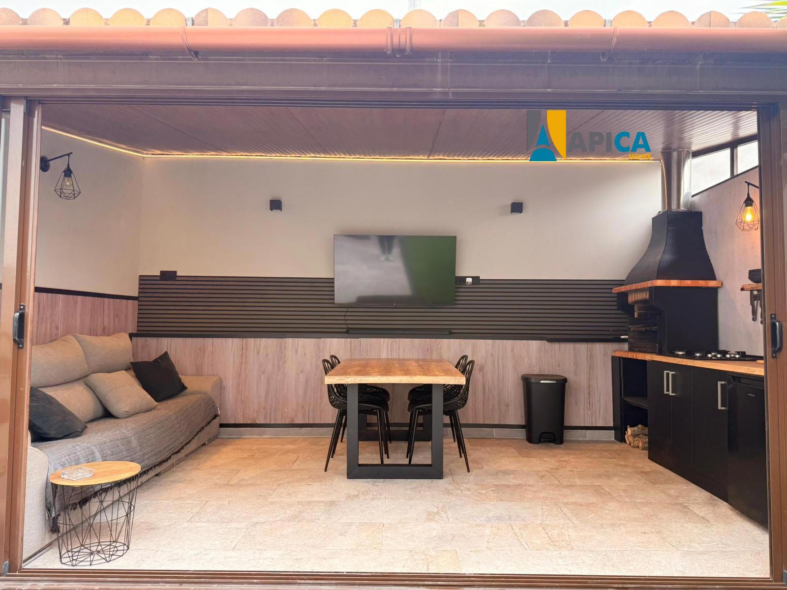 Adosado recién reformado de 4 plantas, en la planta -1 encontramos un amplio garaje privado , una habitación / gimnasio , en la primera planta por el acceso de la calle dispone de un patio delantero, al entrar a la vivienda tenemos un aseo ,contemplamos un amplio salón diáfano seguido de una espectacular cocina de diseño , el salón comunica a un acogedor patio trasero con zonas verdes, césped artificial y un moderno porche que cumple todas las funciones de apartamento, con barbacoa, chimenea, cocina completa, comedor, sofá cama y aire acondicionado, todo rodeado de una bonita cristalera.